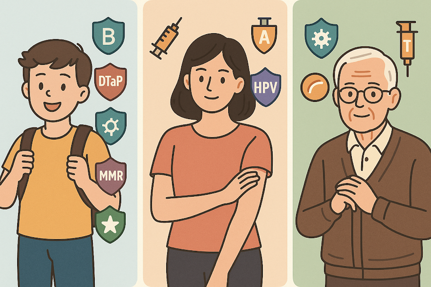 | 성인(20~59세) | 파상풍, 독감, A형간염, HPV, 폐렴구균(특수군) | 직업·생활환경·기저질환에 따라 추가 접종 설계 |