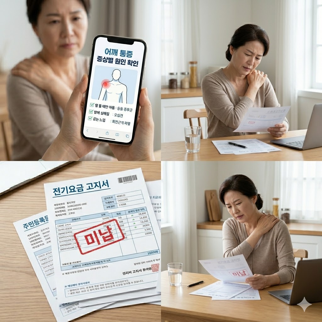 어깨가 아픈데 단순 근육통인지, 병원에 가야 하는지 헷갈릴 때가 많습니다. 이럴 때는 왼쪽인지 오른쪽인지보다 언제 아픈지어디가 아픈지굳는지저림이 있는지를 먼저 확인해야 원인 방향이 빨리 잡힙니다.