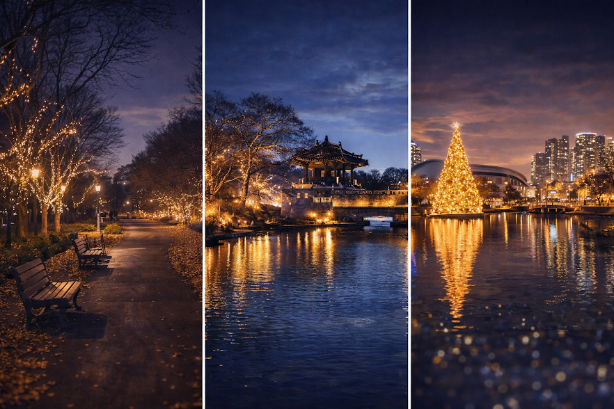 크리스마스 시즌 야경은 장소보다 요일 선택이 만족도를 더 크게 좌우합니다. 주말은 조명·이벤트가 풍부하지만 혼잡도가 높고, 평일은 동선이 부드러워 사진과 산책 만족도가 높습니다. 아래는 수도권 기준으로 아이 동반·커플·혼행 모두 고려해 선별한 현실 추천입니다.