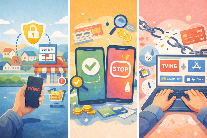 대부분 결제 경로가 다릅니다. 티빙 앱에서 안 보이면 구글플레이 또는 애플 구독을 먼저 확인해야 합니다.