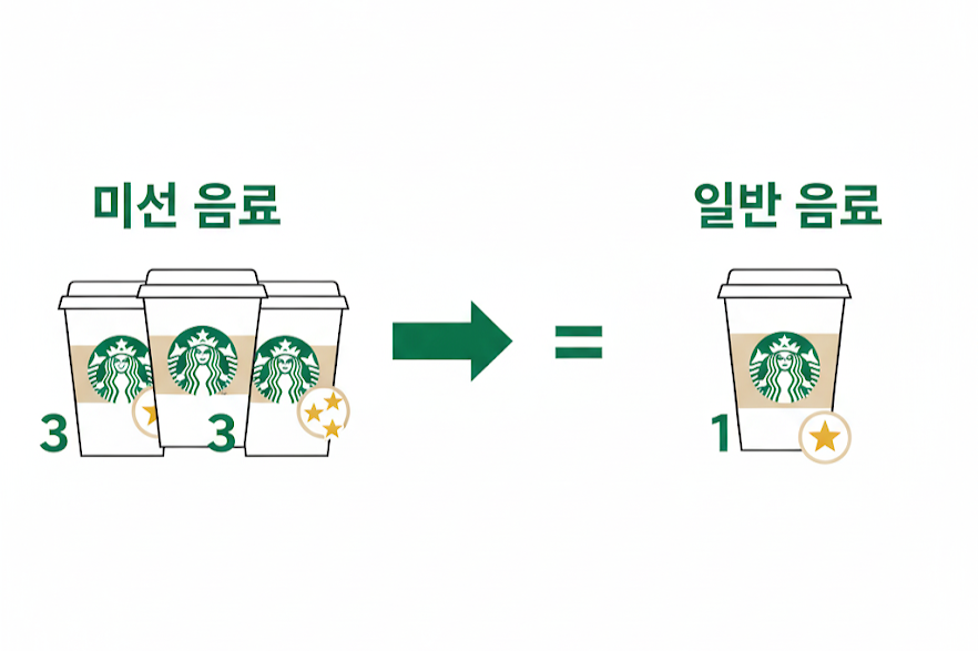 예를 들어, 일반 아메리카노를 17번 사면 17개 스티커가 쌓입니다. 하지만 미션 음료(스티커 3개)를 6번만 사면 18개가 쌓여 목표를 달성할 수 있어요. 비용은 약 30% 절감되는 셈이죠.