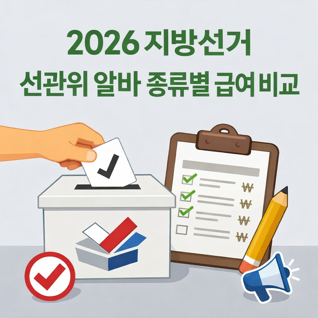 2026 지방선거를 앞두고 선관위 알바에 관심을 갖는 분들이 많습니다. 투표사무원, 개표사무원, 공정선거지원단 중 어떤 유형이 급여가 높은지, 어떻게 신청하는지 한 번에 정리했습니다.